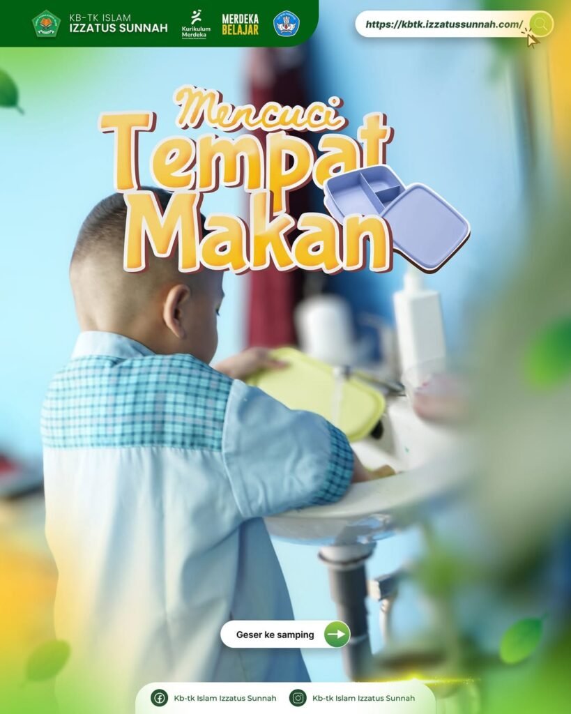 Maka, secara tidak langsung, mencuci tempat makan juga bisa melatih pemahaman ananda shalih-shalihah tentang prosedur dan alur kegiatan.