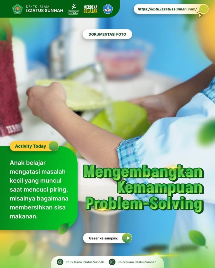 - Mengembangkan Problem-Solving, Anak belajar mengatasi masalah kecil yang muncul saat mencuci piring, misalnya bagaimana membersihkan sisa makanan.